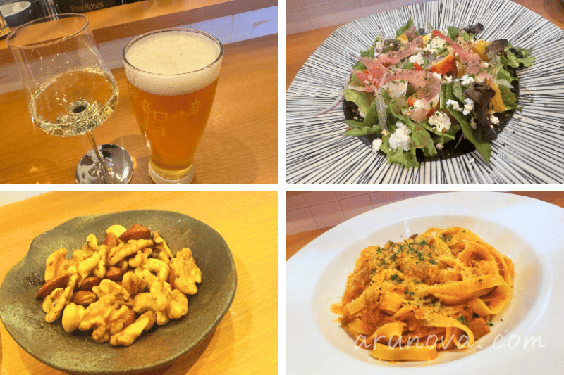 トリュフナッツだけでも、ずっと飲めそう♪お腹を満たすピザやパスタもあります。
